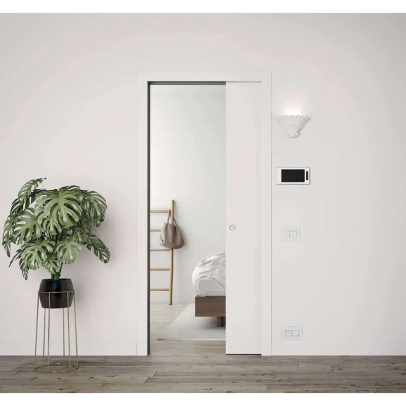 Ak potrebujete v blízkosti dverí umiestniť vypínače alebo zásuvky, riešením je ECLISSE Posuvné s elektroinštaláciou , ktoré prináša predpripravený kanál pre elektroinštaláciu. Pre miesta s požiadavkou na vyššiu nosnosť steny (napr. montáž kuchynskej linky priamo na priečku so zasúvacím systémom) je vhodné riešenie ECLISSE Posuvné s nosným puzdrom Ewoluto, ktoré pomáha dosiahnuť vyššiu tuhosť a stabilitu priečky.